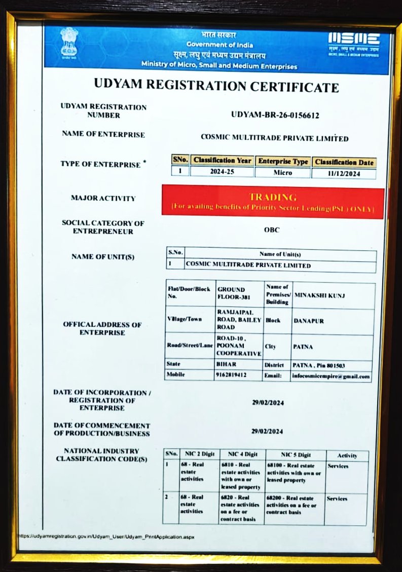 Cosmic Multitrade made our farmhouse land purchase simple and transparent. Clear documentation, honest pricing, and smooth registration gave us complete confidence and peace of mind.
